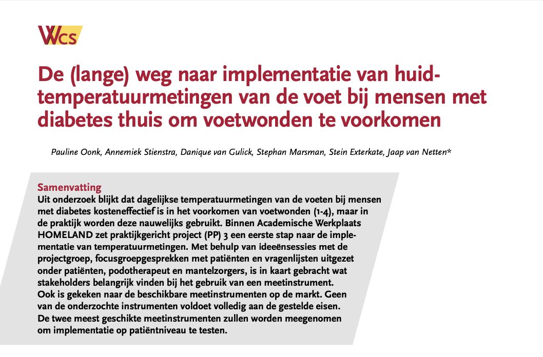 De (lange) weg naar implementatie van huidtemperatuurmetingen van de voet bij mensen metdiabetes thuis om voetwonden te voorkomen